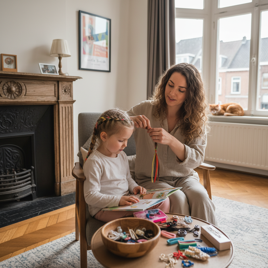 Onze mobiele service betekent dat uw kind thuis kan worden gevlochten in een vertrouwde omgeving — geen stressvolle salonbezoeken meer.