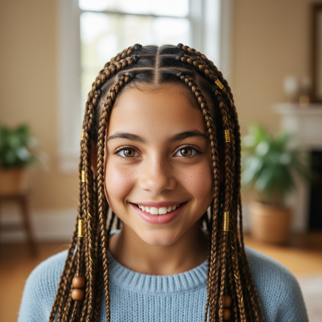Kleine box braids die het haar van kinderen beschermen en er prachtig uitzien.
