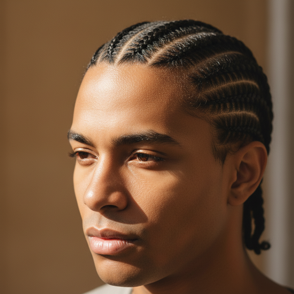 Classic straight-back or patterned cornrows tailored for men. Clean, sharp lines that suit professional and casual settings.