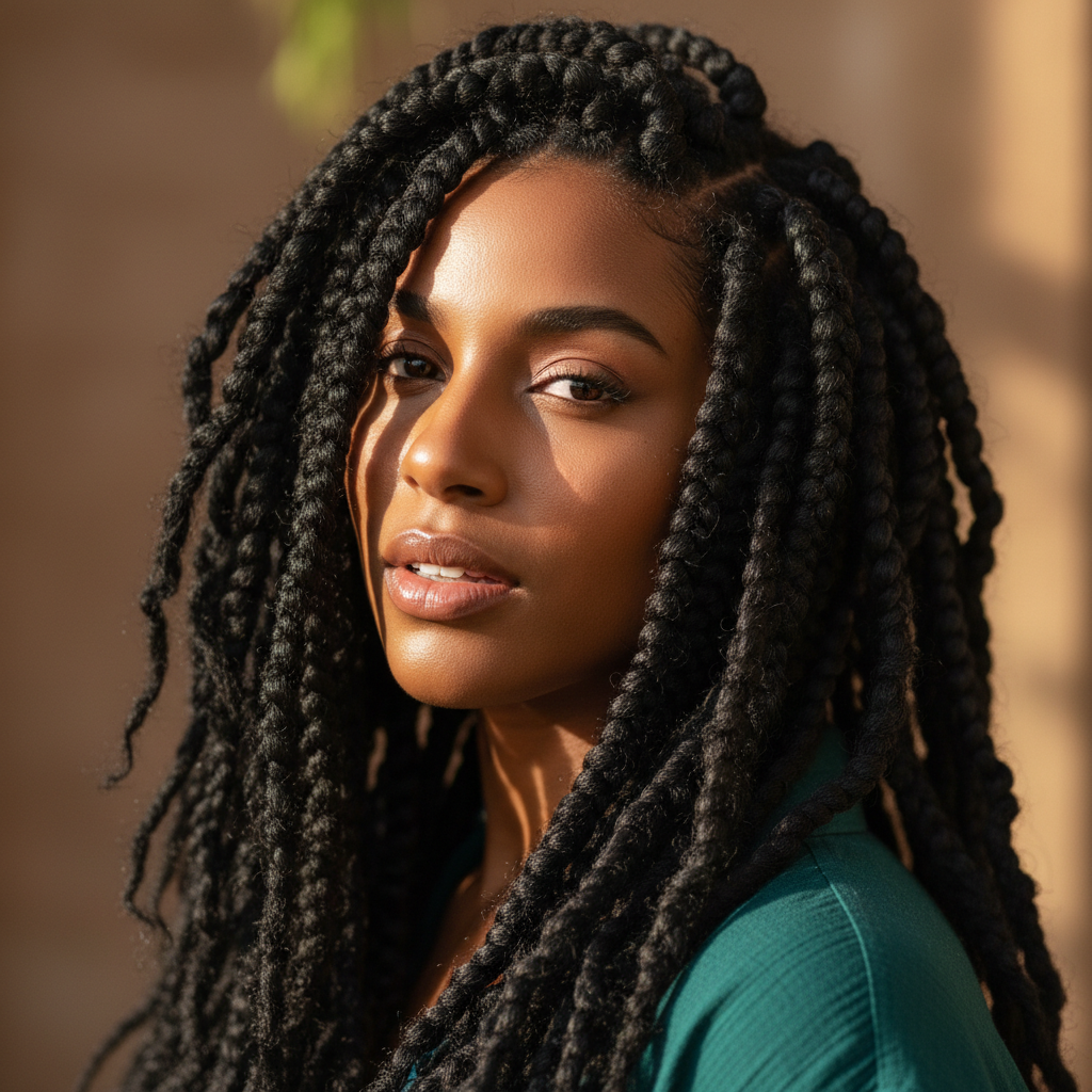 Thick, natural-looking twists using Marley hair for a textured, earthy aesthetic. Great for natural hair lovers who want a bold, protective style.